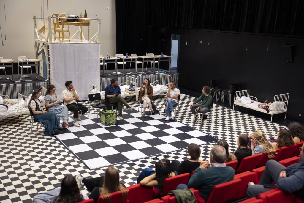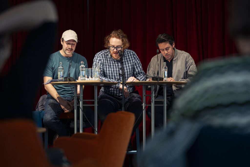 Das diskursiv-theoretische Rahmenprogramm wurde maßgeblich von Gastdramatiker Raoul Biltgen geprägt, zweimal rückte er in den Fokus: einmal anlässlich der Ouvertüre, bei der er die Rede vom Theater hielt, und das zweite Mal zusammen mit Olivier Garofalo, Tullio Forgiarini und Jan Jaroszek bei der Finissage, d.h. dem von Henning Marmulla moderierten Podiumsgespräch. Zentrale Causa: Was ist Jugendtheater und wie kann es gelingen?